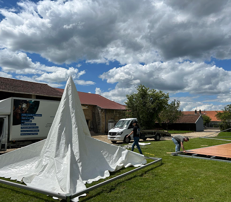 Installation complète de la pagode par nos professionnels pour un événement clé en main et sans stress.